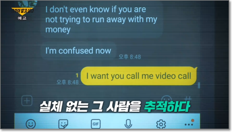 네가 아니면 치료 받을 수 없다는 연인의 말을 외면할 수 없어 수억 원의 금액을 얼굴도 모르는 사람을 위해 송금을 했는데 수술 후 한국에 온다던 그는 한국 방문을 계속 미뤘고 입금한 의료비도 되돌려 받지 못했습니다. 그리고 시간이 지나 이 모든 것이 속은 것이라는 확신이 들었는데 이런 일을 당한 사람이 제작진이 만난 사람만 해도 4명이 됩니다.