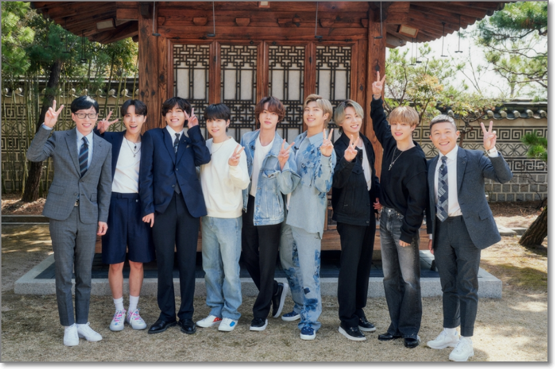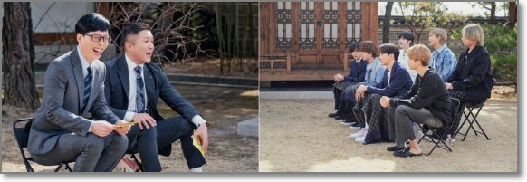 유재석, 조세호와 더욱 깊이 있는 대화를 나누기 위해 세 팀으로 나뉘어 진행된 인터뷰에서는 RM-뷔, 제이홉-지민-정국, 그리고 진-슈가가 짝을 이뤄 토크를 나눴다고. 멤버들은 유재석, 조세호를 사로잡을 정도로 진솔한 대화를 가졌다고 해 관심이 높아진다.