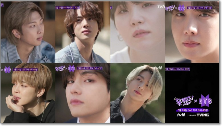 어디서도 들을 수 없었던 '그래미 어워드' 후기부터 웃음이 가득한 완전체 인터뷰, '유 퀴즈'에서만 볼 수 있는 단체 '유 퀴즈' 타임, 속 깊은 이야기들이 드러나는 멤버별 인터뷰까지 풍성한 볼거리가 예고되는바. 본 방송을 앞두고 알고 보면 더욱더 재미있는 '유 퀴즈X방탄소년단' 특집의 관전 포인트를 공개한다.