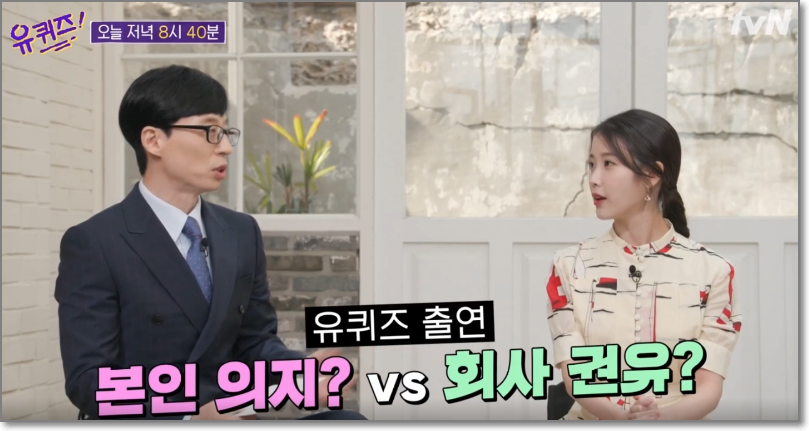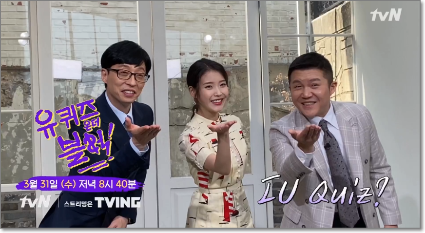 tvN의 수요일 대표 예능 유퀴즈에 가수 아이유가 출연합니다. 지난 주 BTS에 이어 역대급 출연자가 연이어 나오는 것 같은데요.