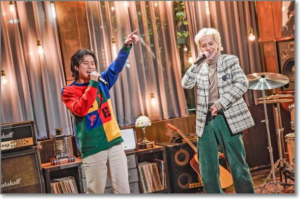 그리고 싱어게인에서 주니어 심사위원이었던 규현 선미 이해리 송민호가 top3의 새출발을 응원하러 축하사절단으로 옵니다. 이들은 서로의 곡을 바꿔 부르며 친해지는 시간을 가졌는데요. 탑3가 주니어 심사위원의 히트곡을 바꿔 부르고 즉석 컬래버레이션 무대를 펼칩니다.