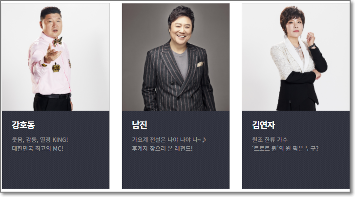 강호동이 초대형 서바이벌 오디션 프로의 MC를 맡고 심사위원으로는 남진, 김연자, 진성, 김성환, 윤일상, 바다, 소향이 날카롭고 예리한 심사를 하게됩니다.