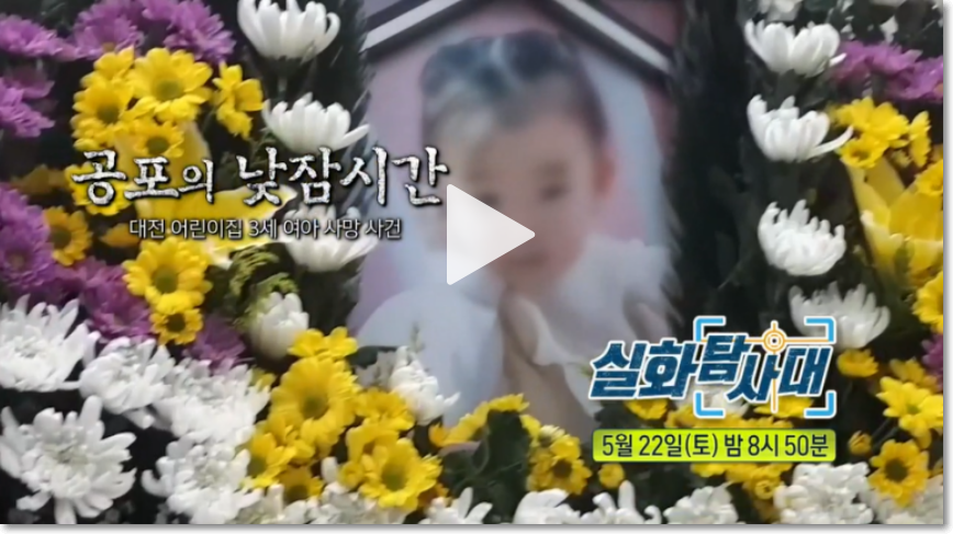 mbc 실화탐사대에서는 최근 일어났던 대전 어린이집 질식사에 대해 다뤘습니다. 아래에서 본방송 시청 방법 뿐 아니라 재방송 다시보기에 대한 자세한 내용 확인 바랍니다.