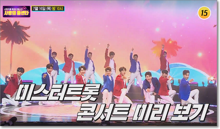 목요일만 기다리게 하는 사랑의 콜센터가 16회에서는 미스터트롯 전국투어 콘서트를 미리 볼 수 있습니다. TOP7과 콘7이 함께할 14명의 꽉 찬 무대를 놓치지 마시고 꼭 만나보시기 바랍니다.