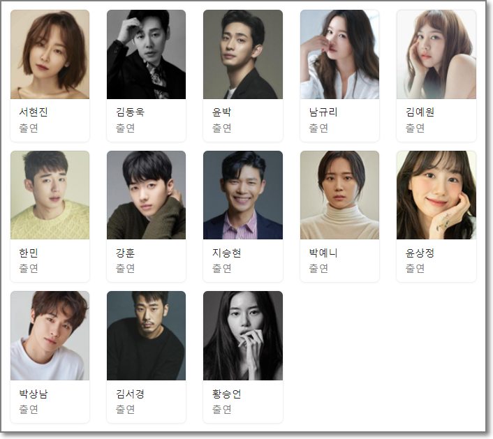 서현진, 김동욱, 윤박, 남규리, 김예원, 한민, 강훈, 지승현, 박예니, 윤상정, 박상남, 김서경, 황승언 등 출연