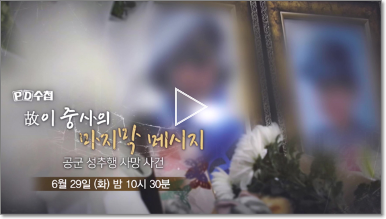 PD수첩'은 오는 29일 이 모 중사의 사건 당일 차량 블랙박스 영상, 성추행 피해 진술서 등을 토대로 사망 사건의 전말을 파헤친다고 28일 밝혔다.
