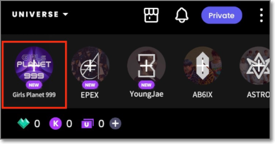 위의 유니버스 어플을 다운로드 후 걸스플래닛 999 메뉴를 선택합니다.