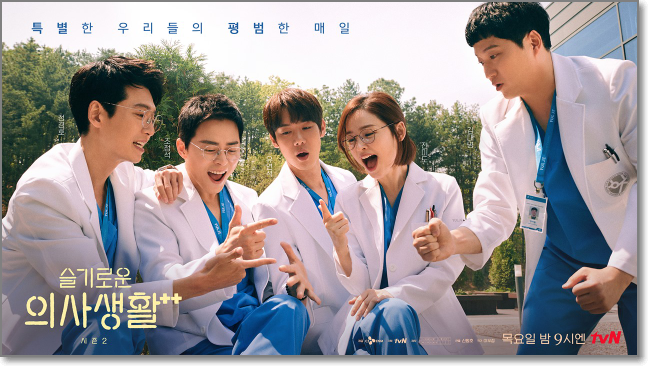 슬기로운 의사생활 시즌2 특별할 것 없는 이야기. 그저 직장생활 하듯 병원의 일상이 스치고, 친구들과의 술 한잔에 묵혀뒀던 설움을 털어내고, 즐겁게 악기 치고 노래 부르면 또 하루가 지나가