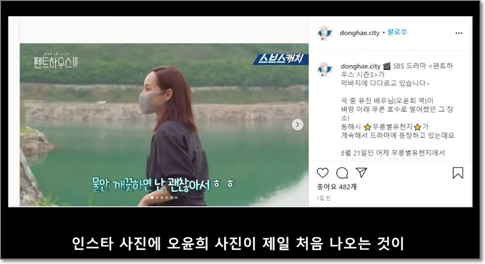 그러면서 "4화, 5화, 6화에 나온다고 예고가 되어 있다. 올린 날짜가 6월 22일이고 4회 방송 날짜가 6월 25일이다. 방송 날보다 동해시 인스타가 3일 일찍 올린 걸 알 수 있다"고 설명했다.