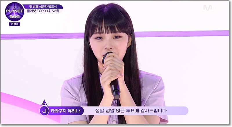 걸스플래닛999' 카와구치 유리나가 플래닛 TOP9에서 1위를 차지했다.