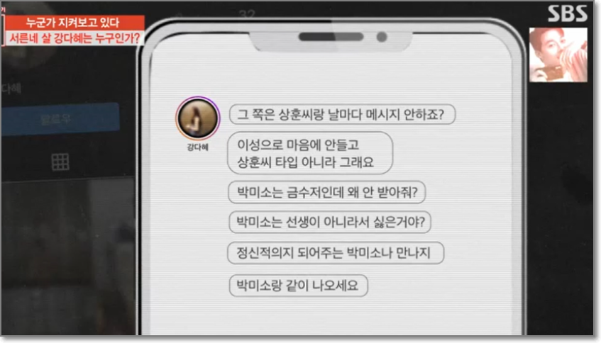 또 미소씨는 자신이 범인이 아니라면서 제작진에게 따져 물었는데 바로 상훈에게 "나는 오빠에게 어떤 존재냐? 나는 이용만 당하는 것 같다"라고 말했고 제작진에게는 상훈씨에 대한 불쾌한 감정을 말하더니 강다혜 계정과 미소 씨의 계정을 삭제하면서 유력한 스토킹 용의자임을 드러내면서 시청자들에게 놀라움을 자아내게 했다.