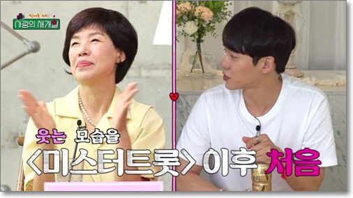 7회에는 미스터트롯에 나왔던 가수 이대원의 어머니가 출연합니다. 이대원의 어머니 '사이다'는 아들과 싱크로율 100%의 아름다운 미모를 자랑했는데요.