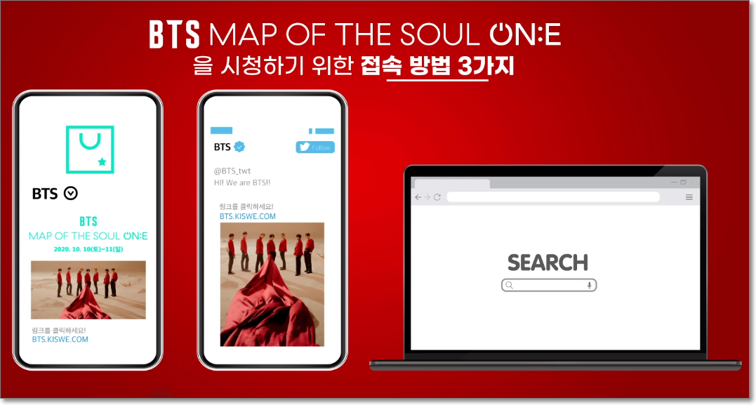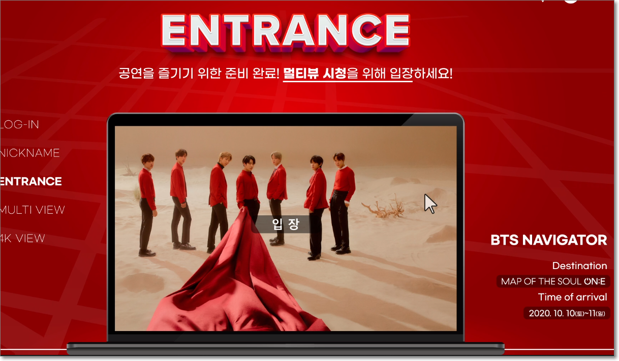 ‘BTS 맵 오브 더 소울 원’ 콘서트는 단 하나(ONE)뿐인 온라인 에디션(ONline Edition) 공연이라는 의미를 지니며, 방탄소년단은 단순한 온라인 공연을 넘어 오프라인 콘서트에 준하는, 규모감 있는 라이브 스트리밍 콘서트를 펼치는데요