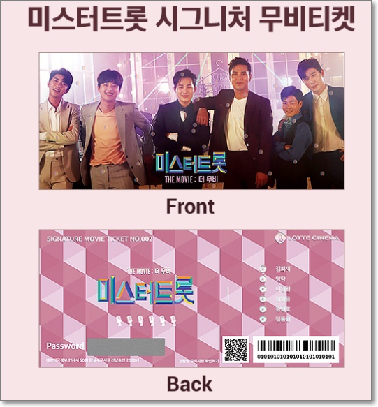 : 시그니처 무비티켓 1매 +무비티켓 봉투 + 미스터트롯 TOP6 랜덤 포토카드 1매