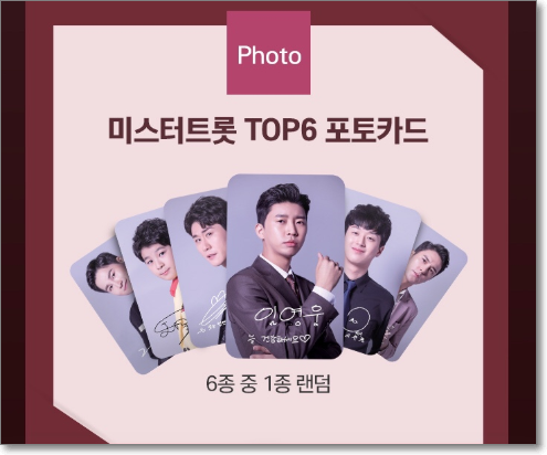 : 시그니처 무비티켓 1매 +무비티켓 봉투 + 미스터트롯 TOP6 랜덤 포토카드 1매