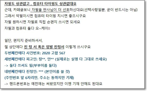 가해자 엄벌에 도움이 됩니다. 프린트 하거나 자필로 위와 비슷하게 양식을 지켜서 작성 바랍니다.