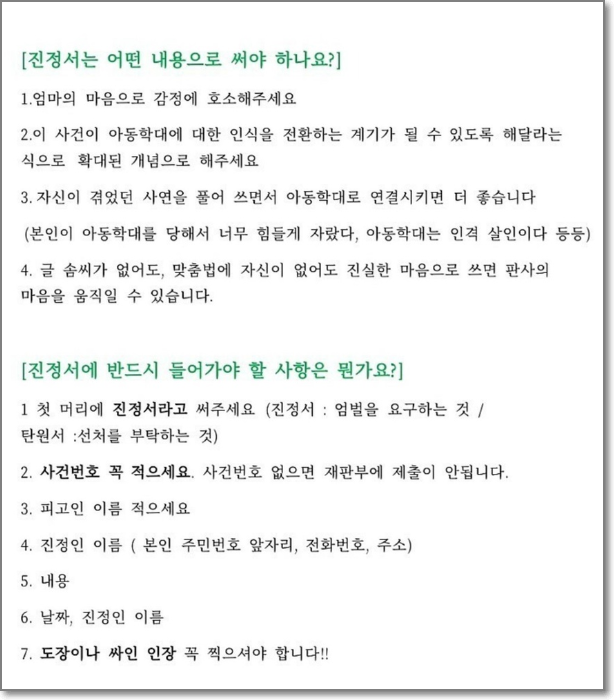 정인이 진정서 작성 방법