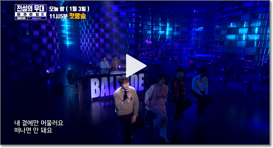 티저 영상에는 트와이스, 블랙핑크, 방시혁, 박진영, 장기하, 현진영, 이상민, 임창정, 양희은, 전인권이 나왔는데요. 1회에서는 한국형 발라드의 계보를 다루는데 앞으로 2회, 3회, 4회에는 어떤 가수들이 나오게 될지 무척 기대가 됩니다.