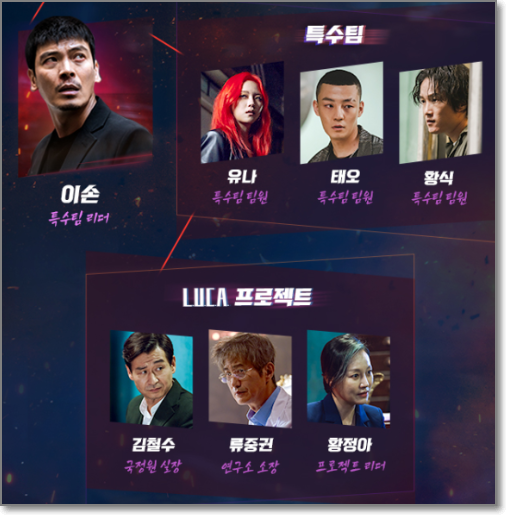 등장인물은 주인공 김래원, 이다희, 김성오 세 사람이라고 볼 수 있습니다. 이들은 루카 만의 독창적인 세계관 완성을 보여주는 핵심 인물인데요.