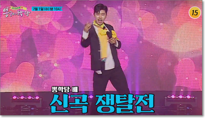 대결에서 이긴 사람은 누가 될지 궁금하네요. 뽕학당 배 신곡 쟁탈전이 펼쳐지는데요. 이들이 펼치는 노래대결도 볼만할 것 같습니다.