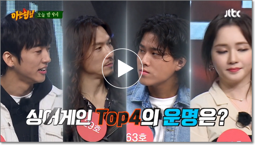 예능 초보 싱어게인 top4의 레전드 무대와 이들의 귀여운 매력을 jtbc 아는형님에서 만나보기 바랍니다.